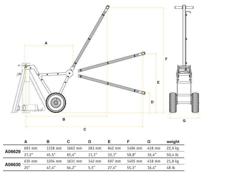 A: 635 mm / 25”